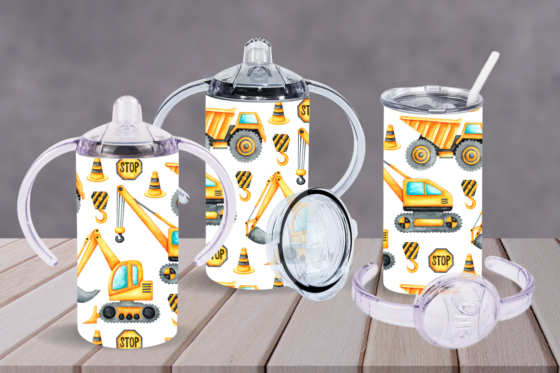 Sippy cup tumbler 12oz with double handle and straw lid, diggers